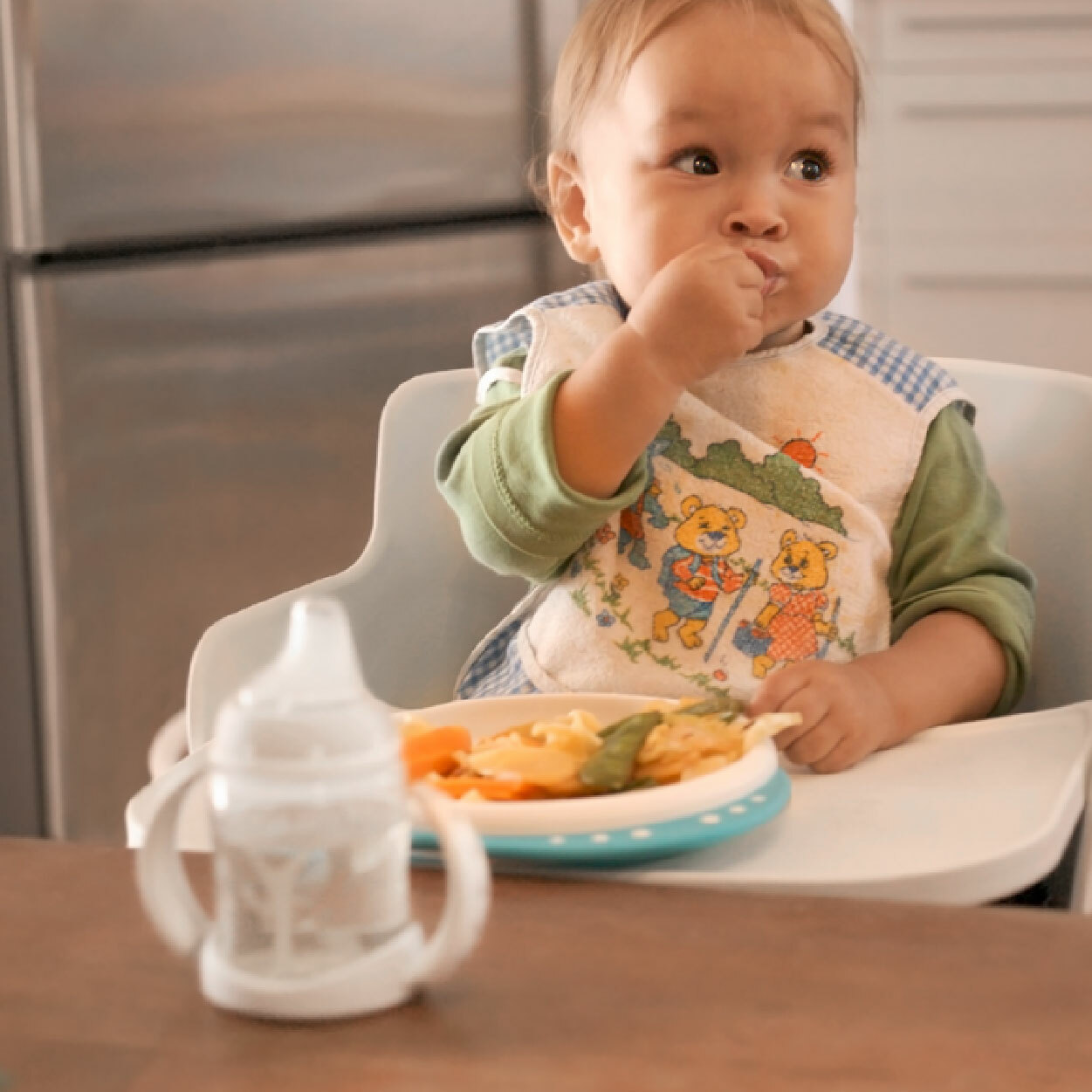 您的寶寶不再是嬰兒了,慢慢從泥狀食物換成小口食物和其他固體食物餵食。這是寶寶開始像家人一樣用餐的時候。換言之,您可以收起食物調理機:只需為寶寶準備輕輕搗碎或切成小塊的食物即可。