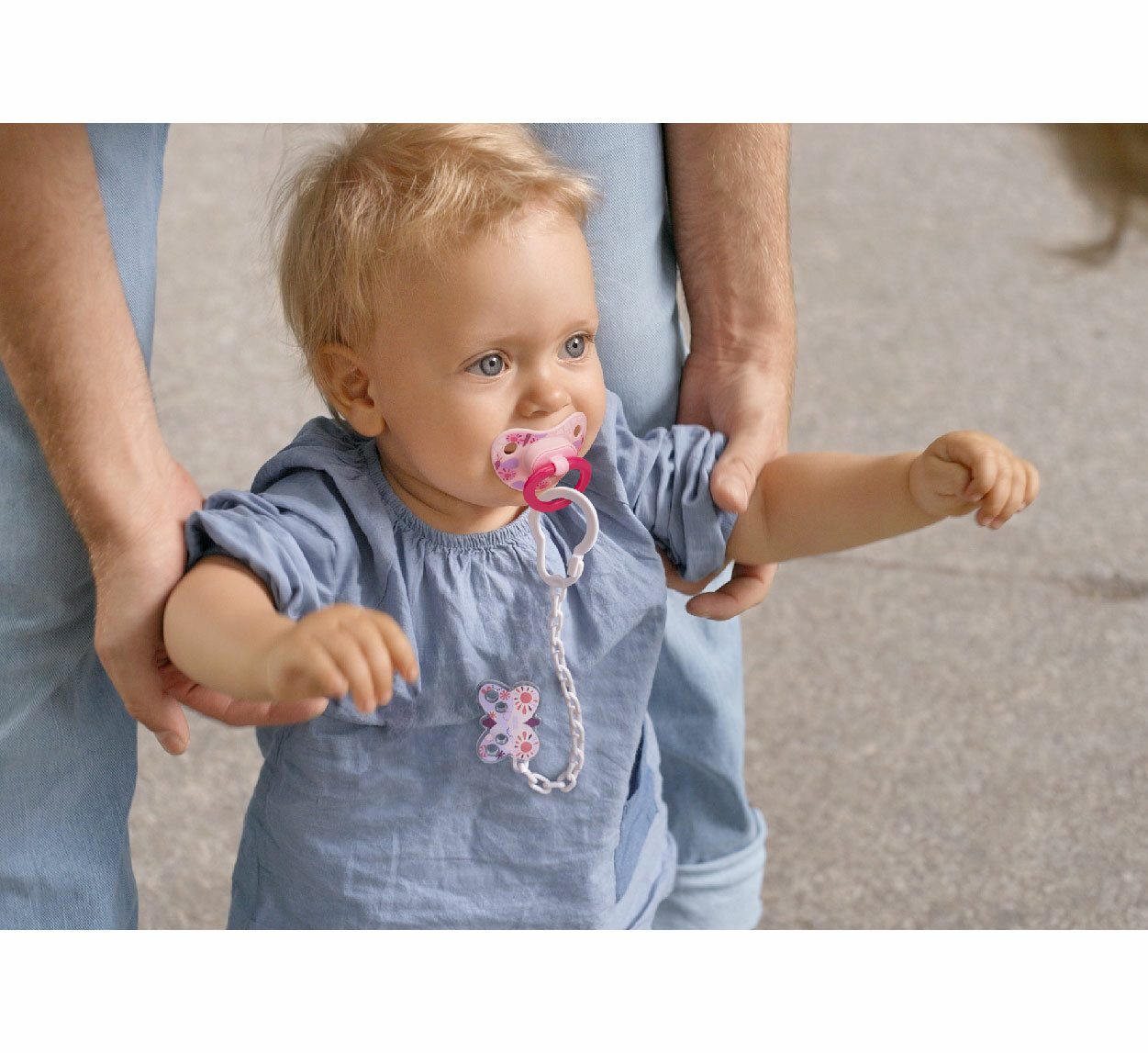 您的寶寶是否利用姆指或床單的某一角落以滿足其先天的吸吮需求,特別是在他/她長出乳牙時,會因安撫奶嘴的合適與否而有顯著的差異。