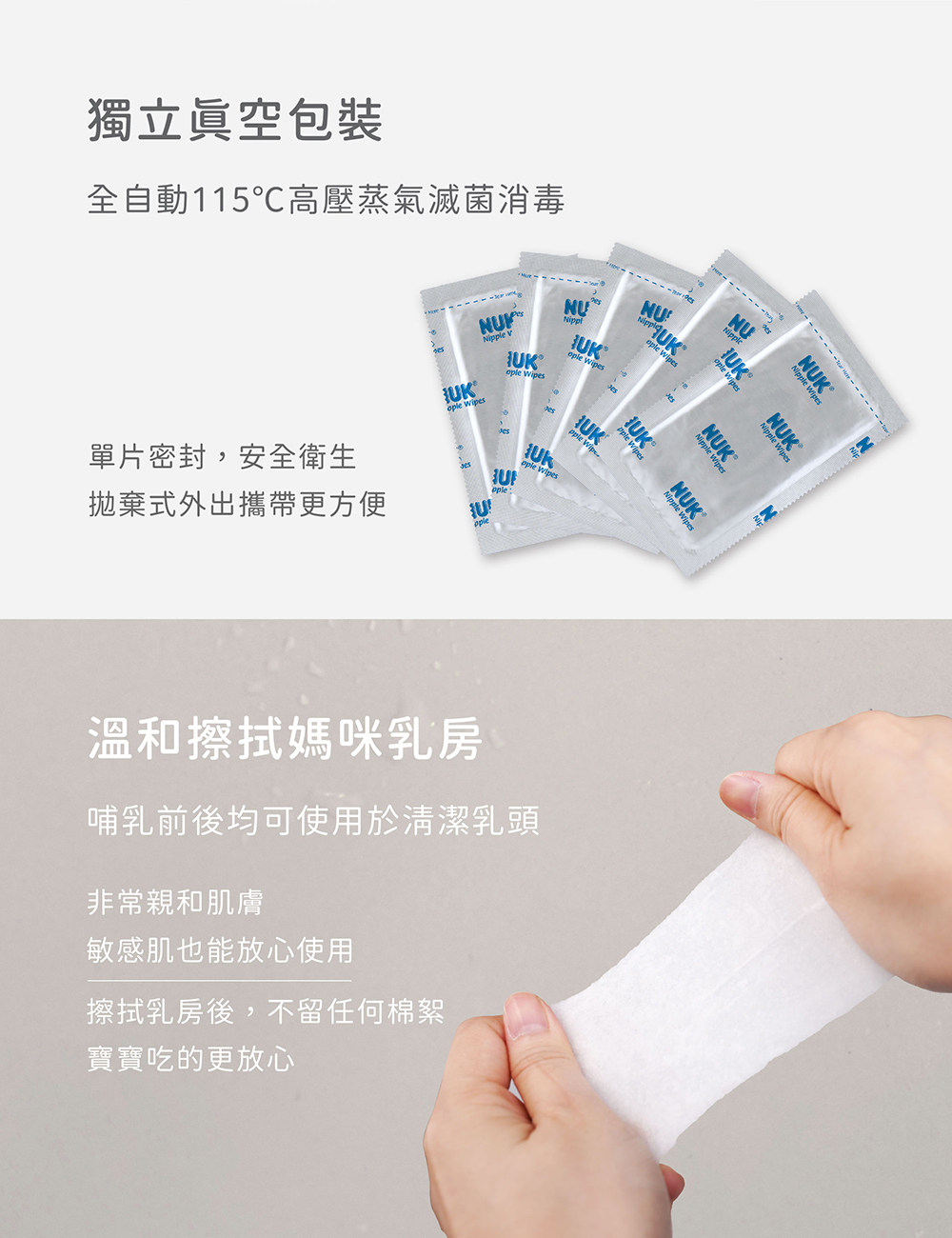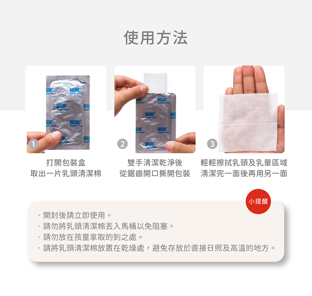 觸感軟綿、零添加淨化純水清潔棉,哺乳前後均可使用於清潔乳頭不掉絮,單片獨立包裝,衛生無菌方便攜帶