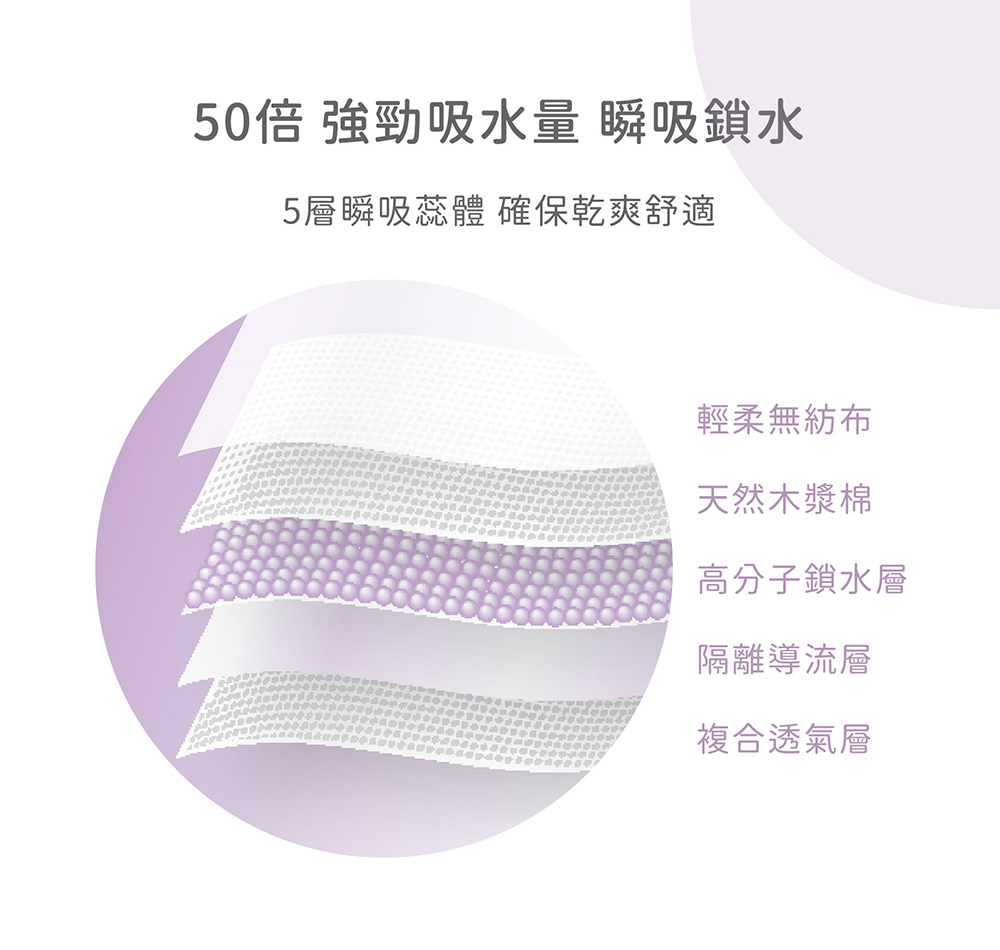 瞬吸乾爽、柔軟透氣舒適,可迅速吸收溢出的奶水、保持乳頭清潔衛生和衣服乾爽,不怕溢乳尷尬