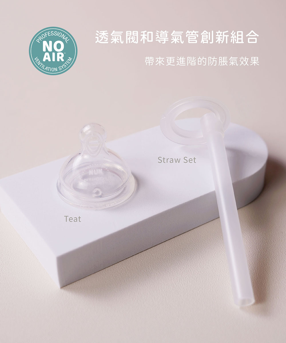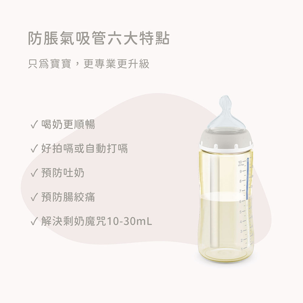 雙效(2)-防脹氣吸管:引導空氣透過吸管直達瓶底,避免空氣與奶水直接接觸