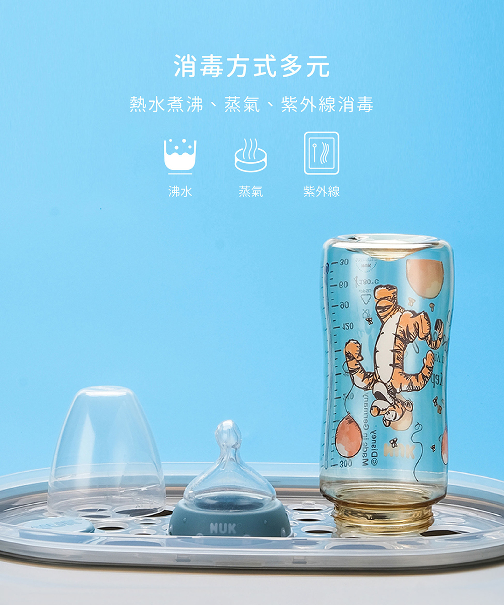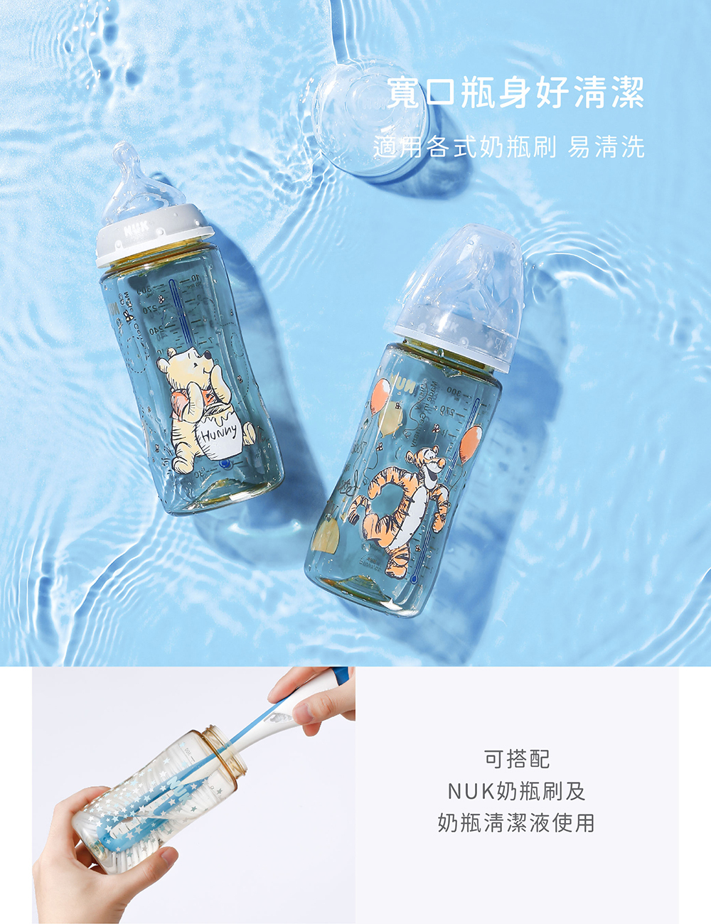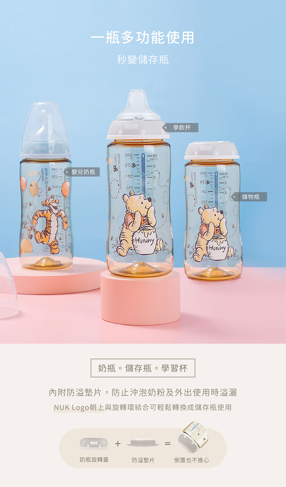 迪士尼維尼聯名-母嬰界首創PPSU感溫奶瓶,智慧感溫辨識奶水溫度,瓶身耐高溫180度搭仿母乳拇指型防脹氣奶嘴,親瓶餵易轉換,一瓶多用變儲存瓶,給爸媽看的見的安心感