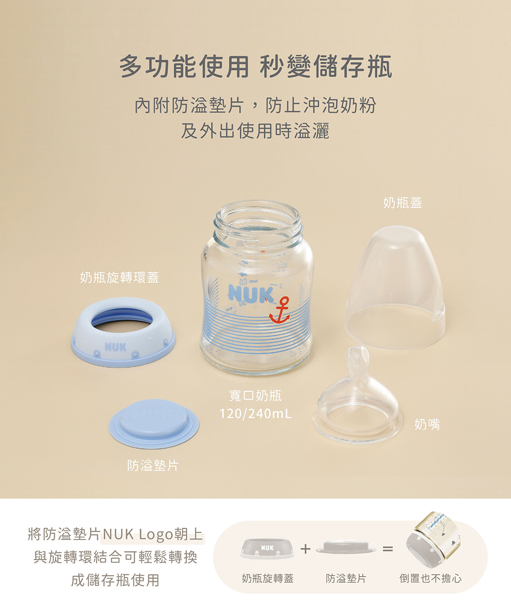 *NUK奶瓶內附M中圓洞奶嘴,新生兒建議可備S小圓洞替換