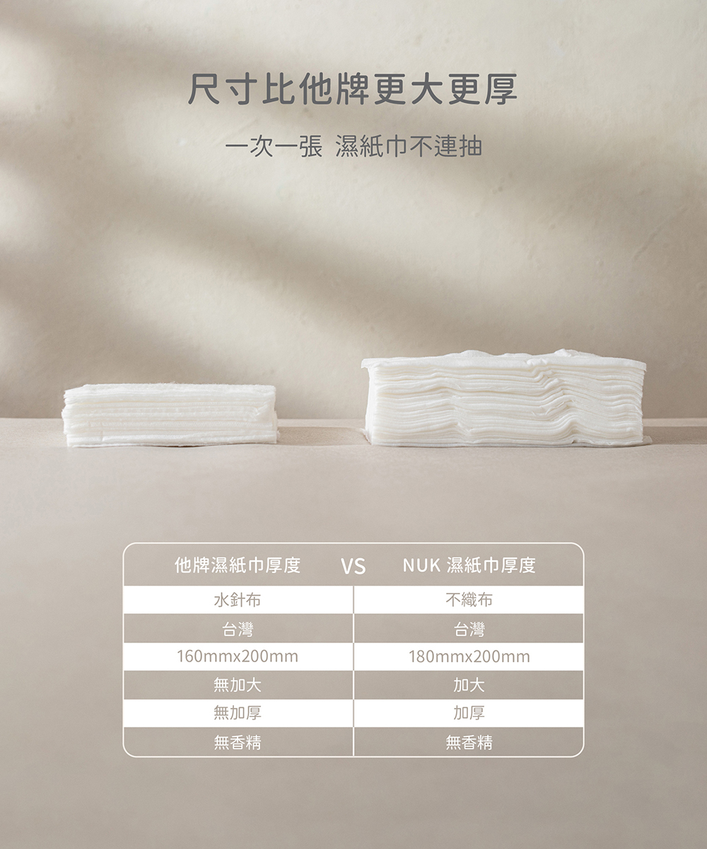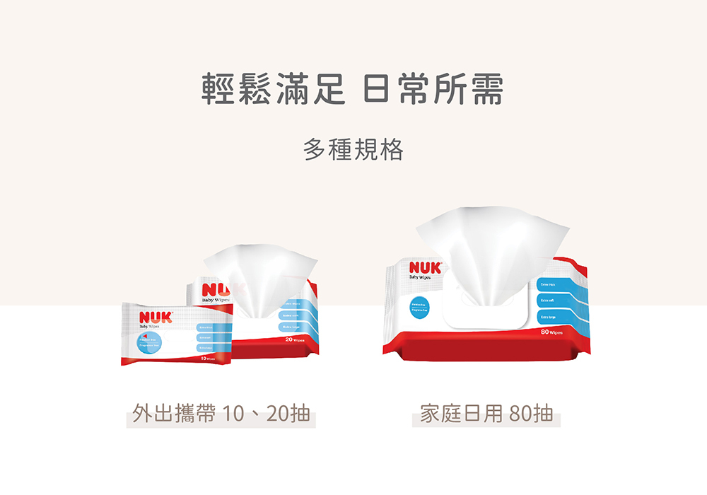 特別加大加厚嬰兒濕紙巾,柔軟不織布,韌性佳不易掉絮,80抽便於家庭日用、20抽外出攜帶,一張滿足全家使用需求。