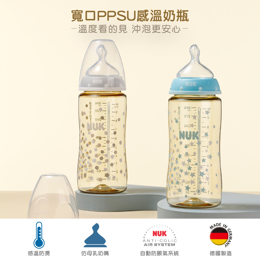 寬口徑PPSU感溫奶瓶300mL|6-18m *顏色款式隨機出貨