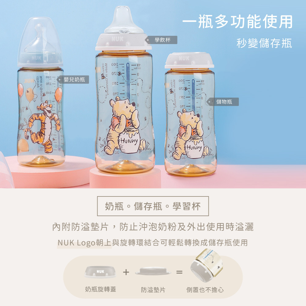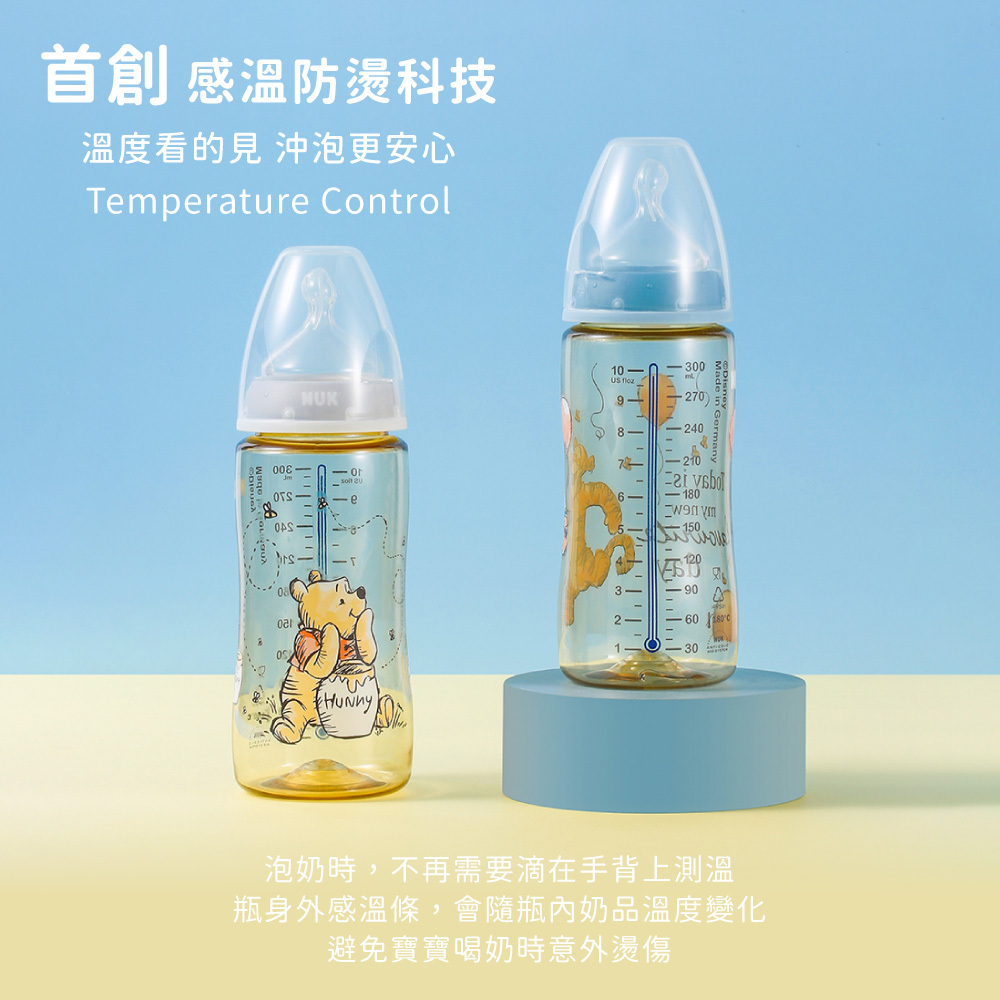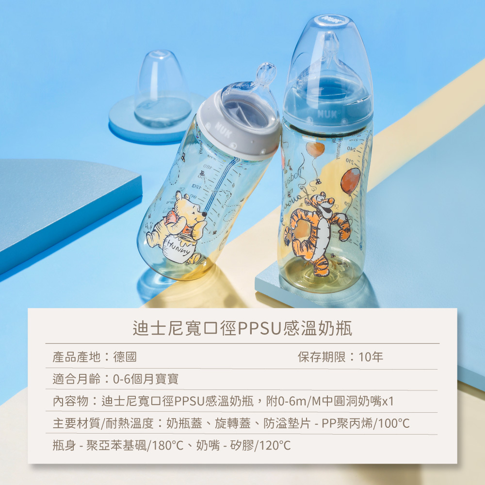 | 內容物 | 迪士尼寬口徑PPSU感溫奶瓶300mL,附0-6m/M中圓洞奶嘴x1 |