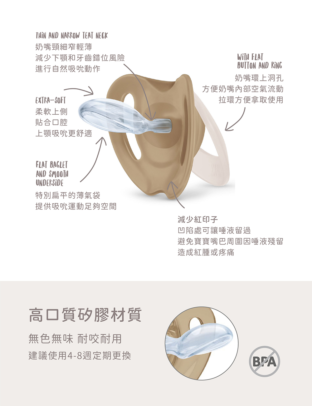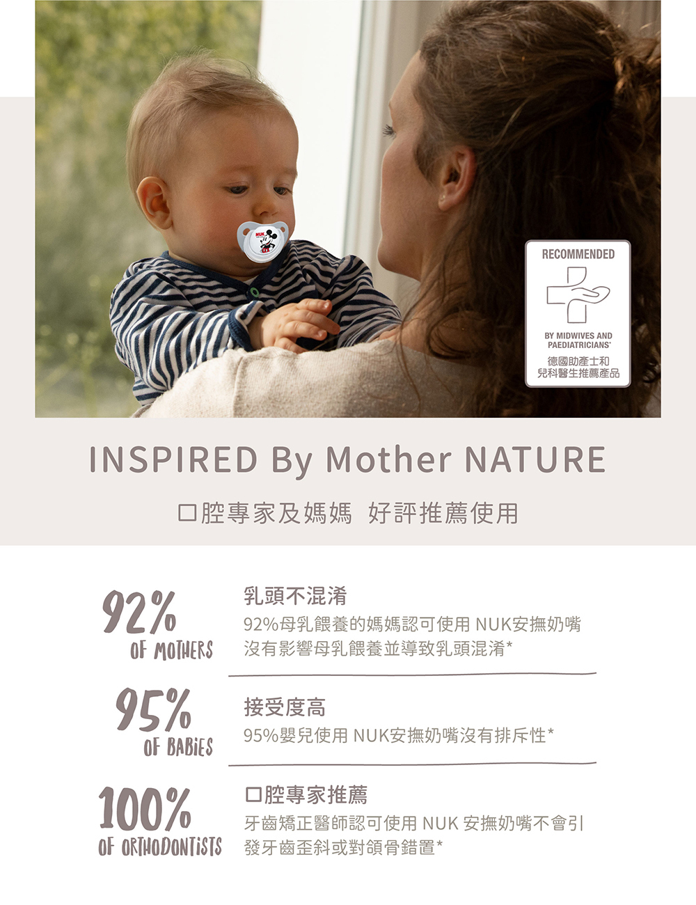 *NUK奶瓶內附M中圓洞奶嘴,新生兒建議可備S小圓洞替換
