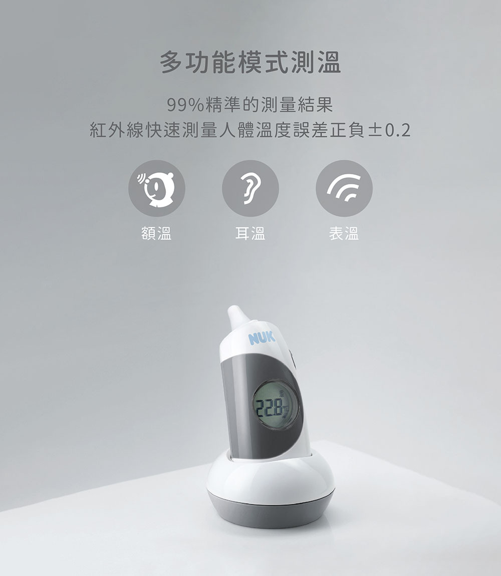 有寶寶的家中必備一支,專為嬰兒細窄耳道設計的耳溫槍,不怕量體溫時吵醒睡眠中寶貝,紅外線快速測量,額、耳、物體表面溫度,小巧輕便、攜帶方便使用更安心