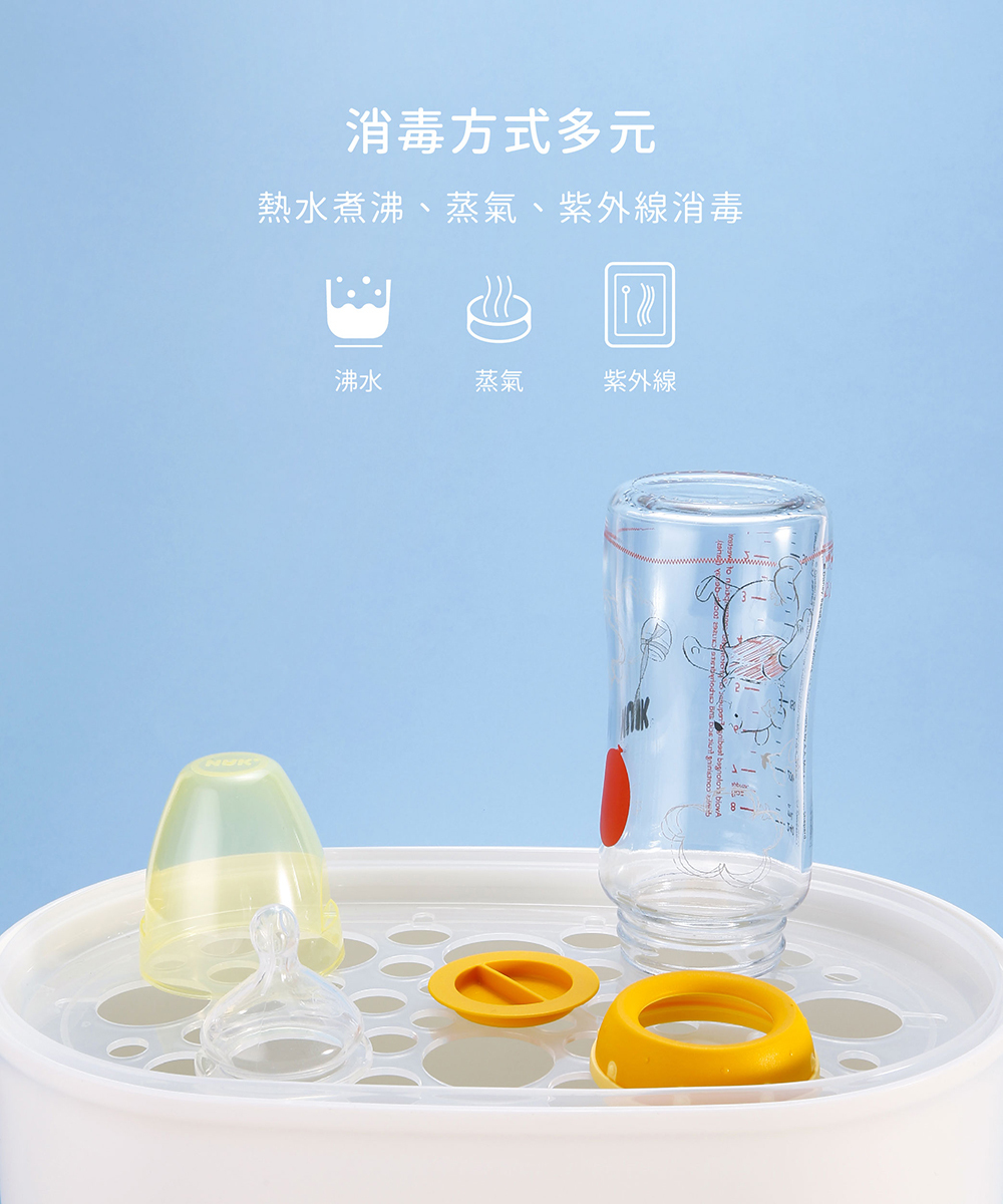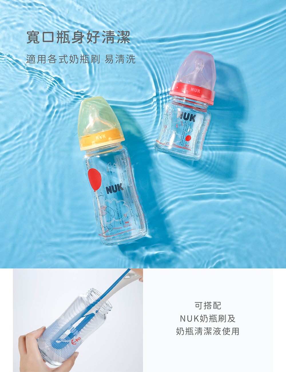 *NUK奶瓶內附M中圓洞奶嘴,新生兒建議可備S小圓洞替換
