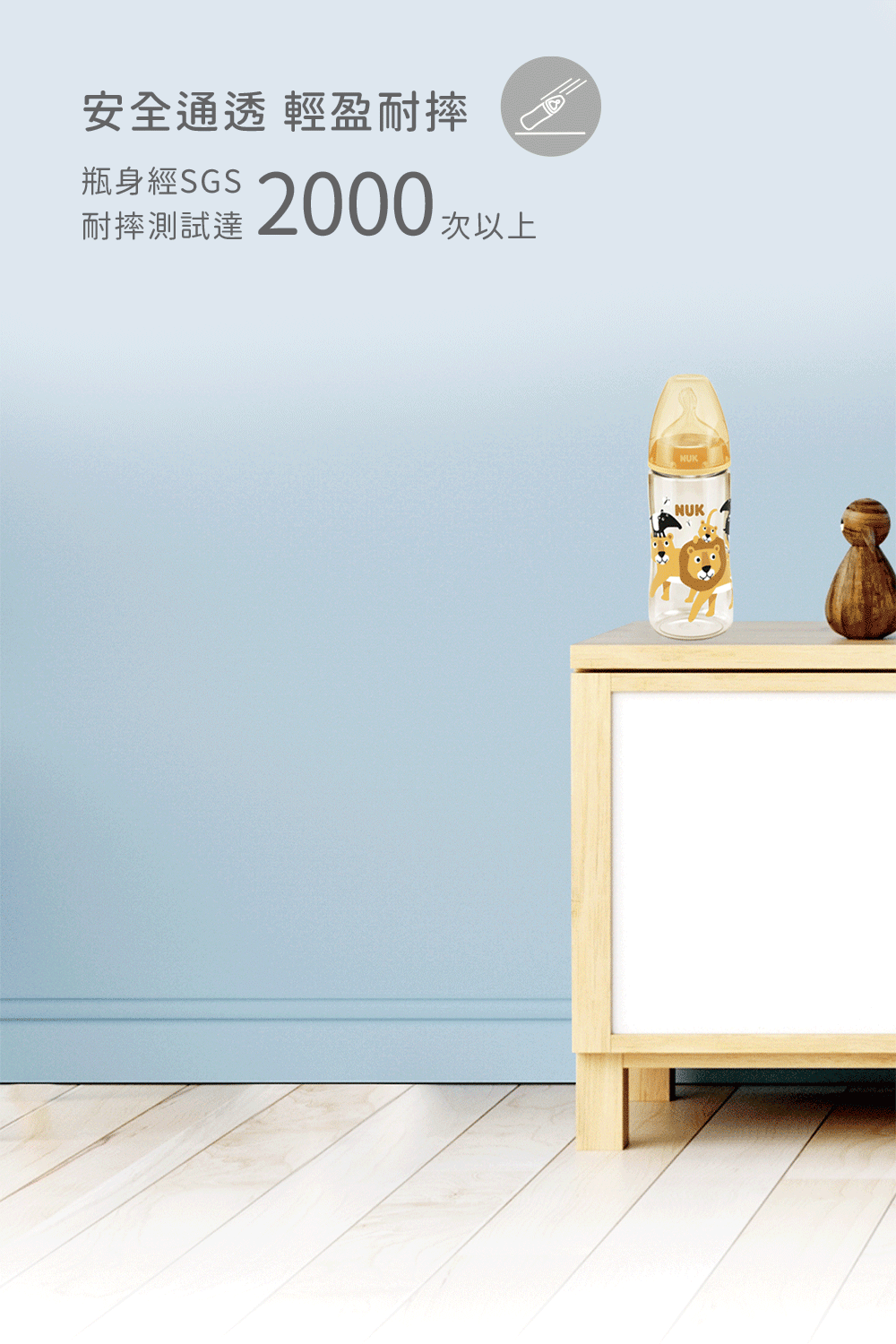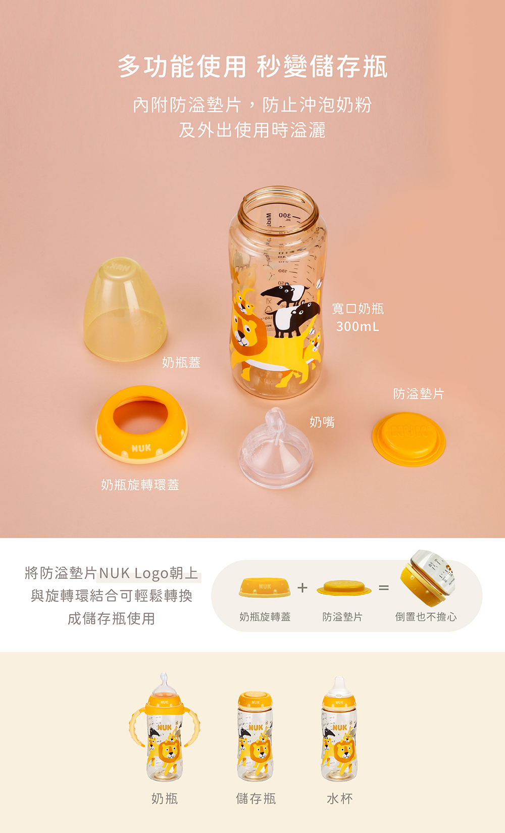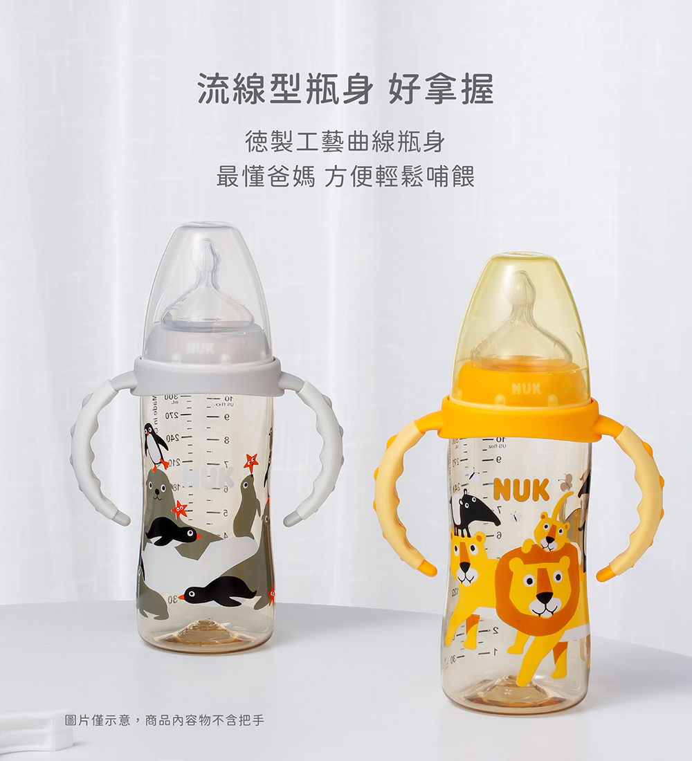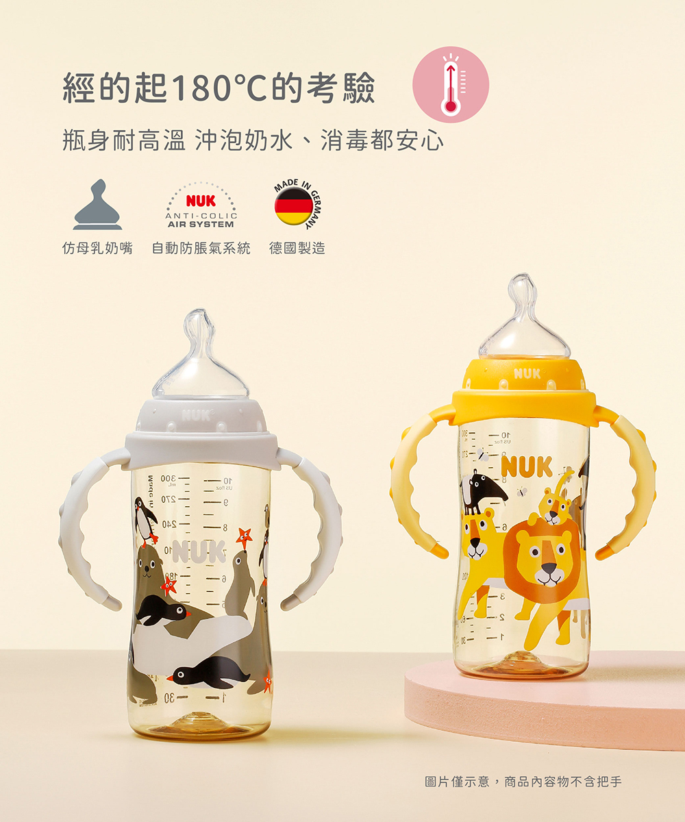 *NUK奶瓶內附M中圓洞奶嘴,新生兒建議可備S小圓洞替換
