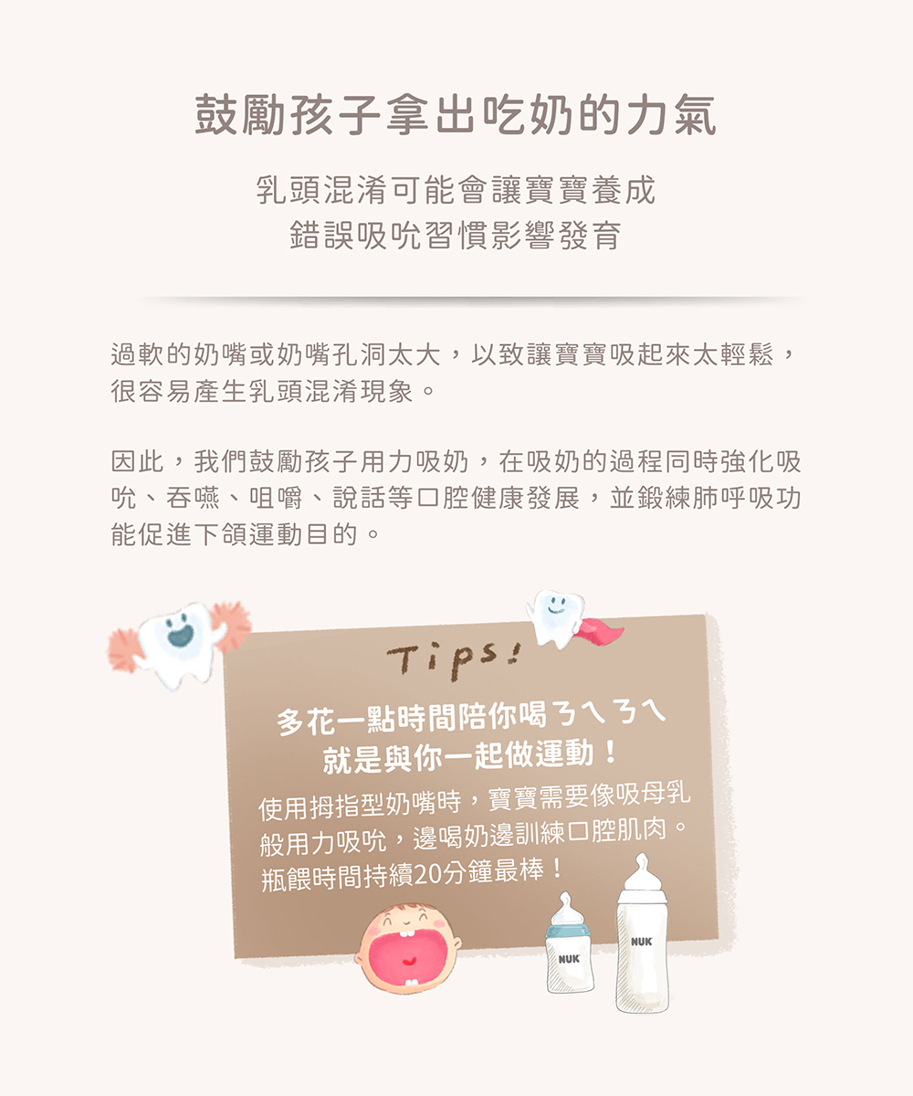 ‧ 仿母乳拇指型奶嘴親瓶餵不混淆