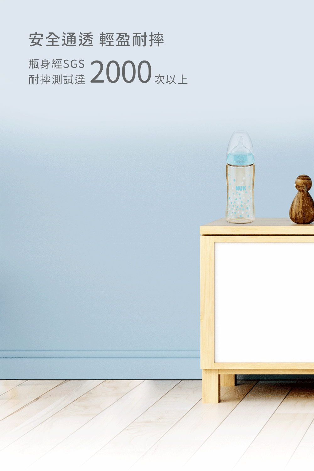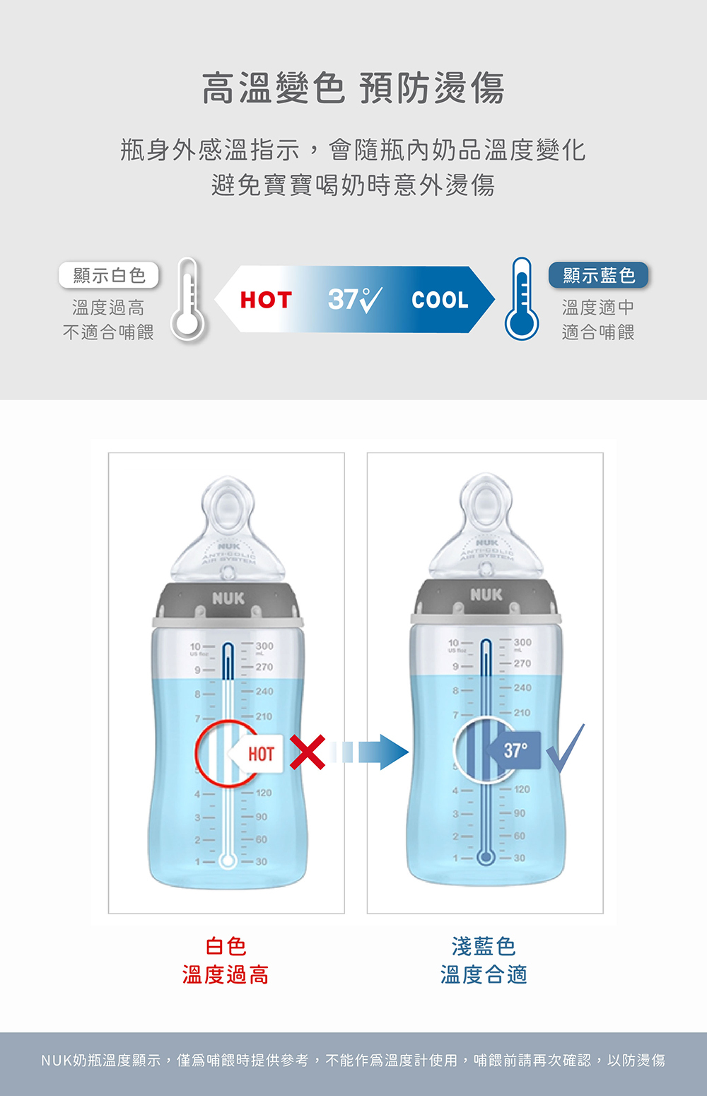 *NUK奶瓶內附M中圓洞奶嘴,新生兒建議可備S小圓洞替換
