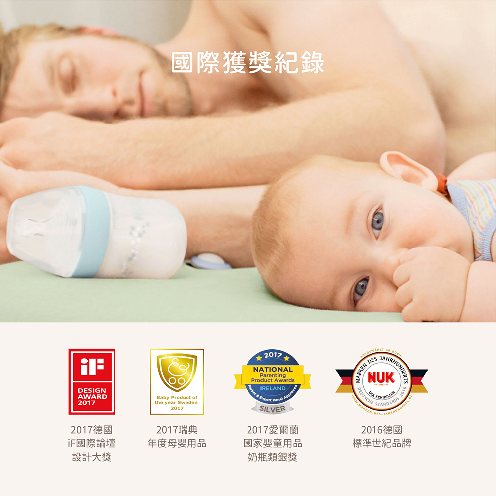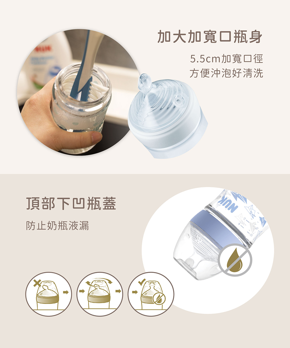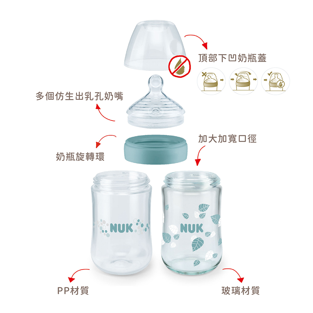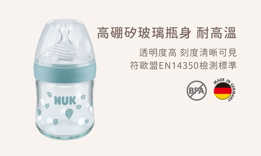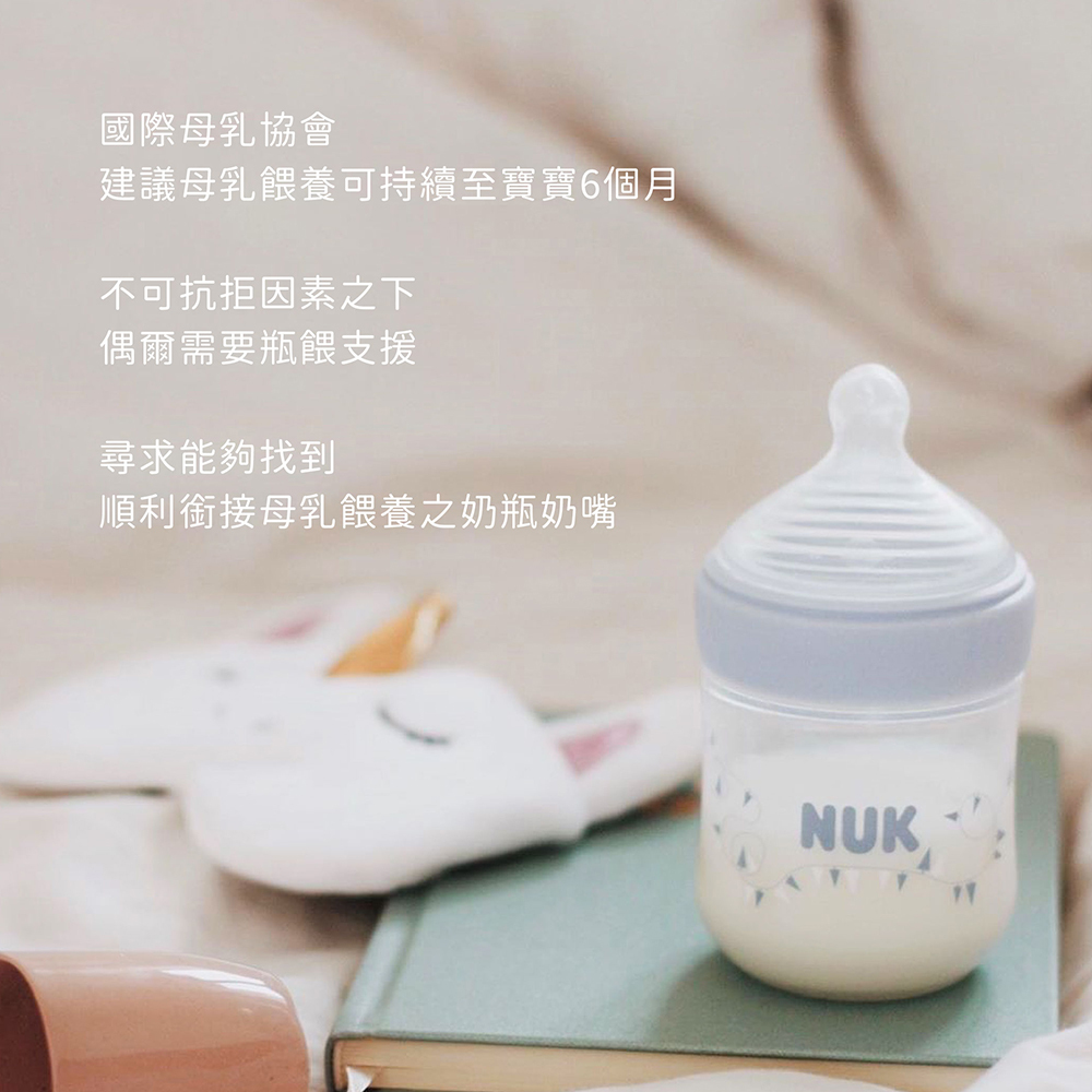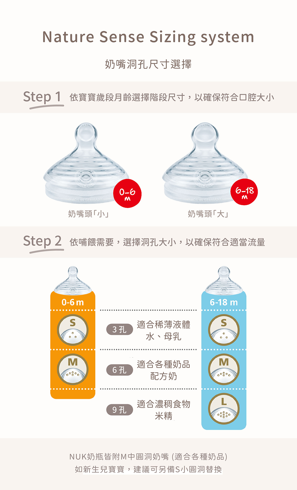 *NUK奶瓶內附M中圓洞奶嘴,新生兒建議可備S小圓洞替換