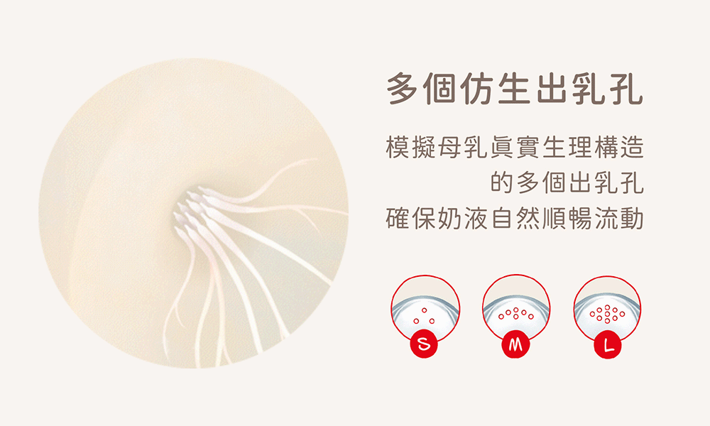 ‧ 多個仿生出乳孔奶嘴,模擬母乳真實生理構造