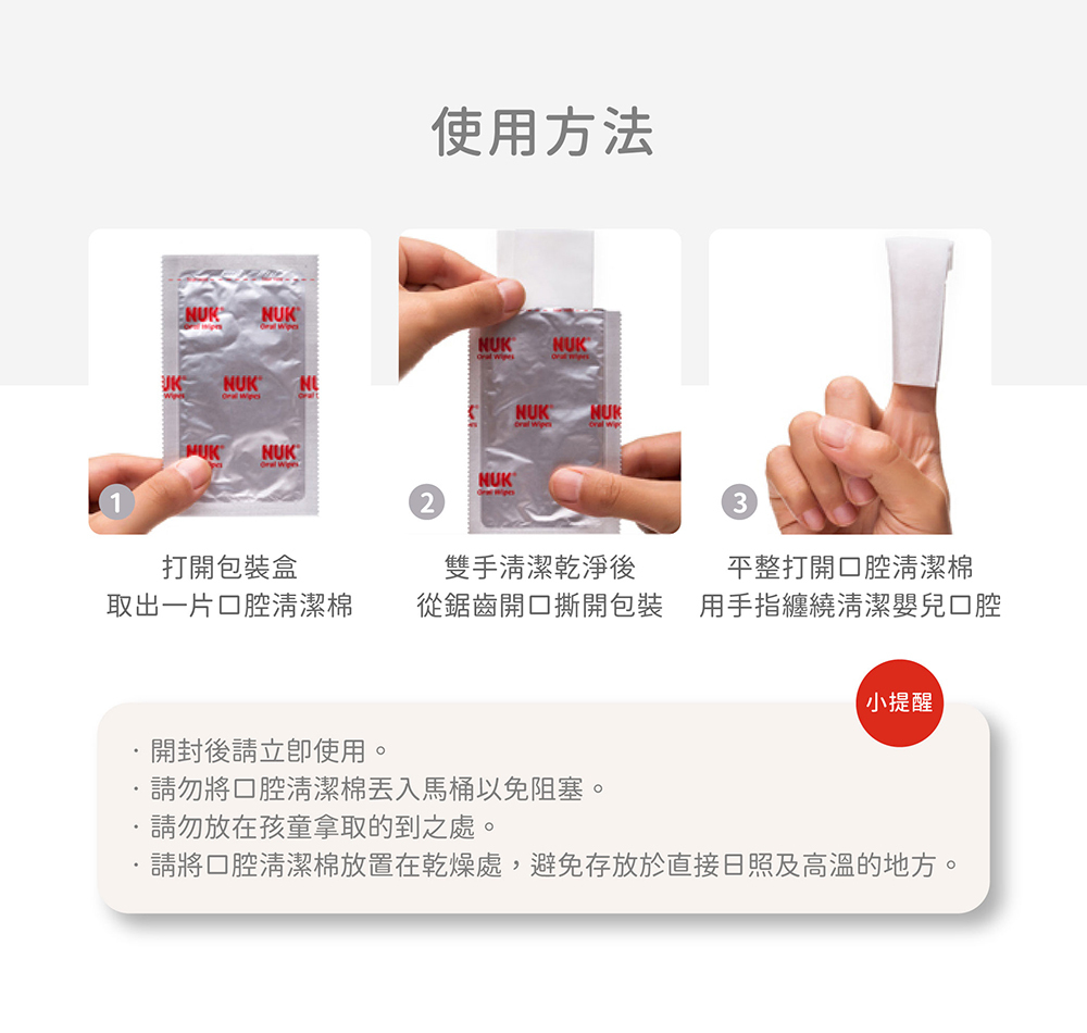 觸感軟綿、零添加淨化純水清潔棉,溫和擦拭寶寶口腔中食物殘屑及黏液,還可按摩幼嫩牙齦