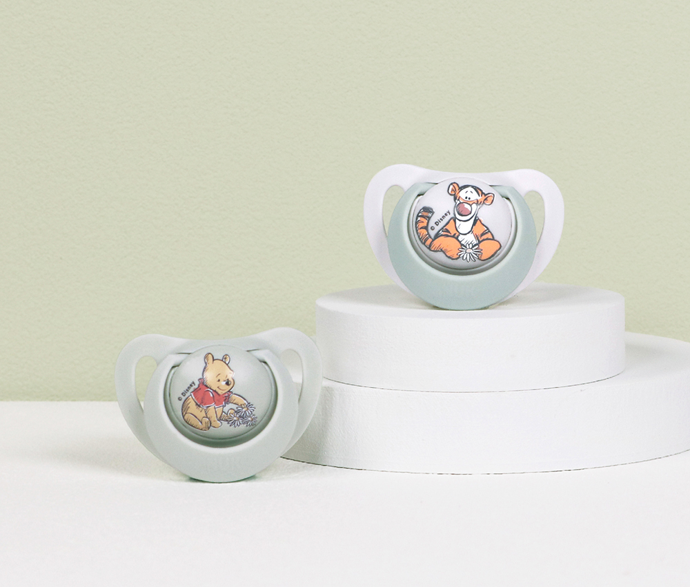 迪士尼維尼授權款可愛安撫寶貝,德國牙醫學專家研發推薦,仿母乳拇指型奶嘴設計訓練寶寶吸吮,減少齒列不正風險,滿足口慾期安撫需求,不含雙酚A,貼心附防塵儲存盒,守護口腔健康發展