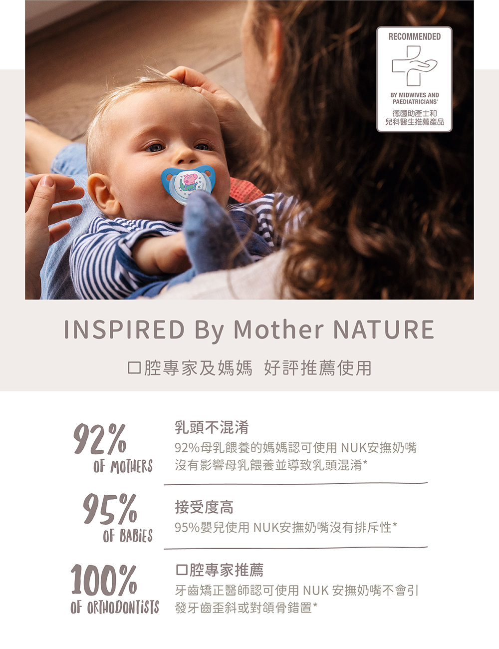 風靡全球倍受寶貝喜愛的小豬佩奇佩佩豬,德國牙醫學專家研發推薦,仿母乳拇指型奶嘴設計訓練寶寶吸吮,減少齒列不正風險,滿足口慾期安撫需求,不含雙酚A,貼心附防塵儲存盒,守護口腔健康發展