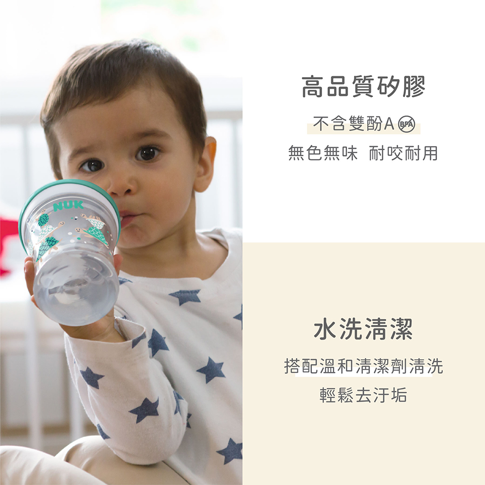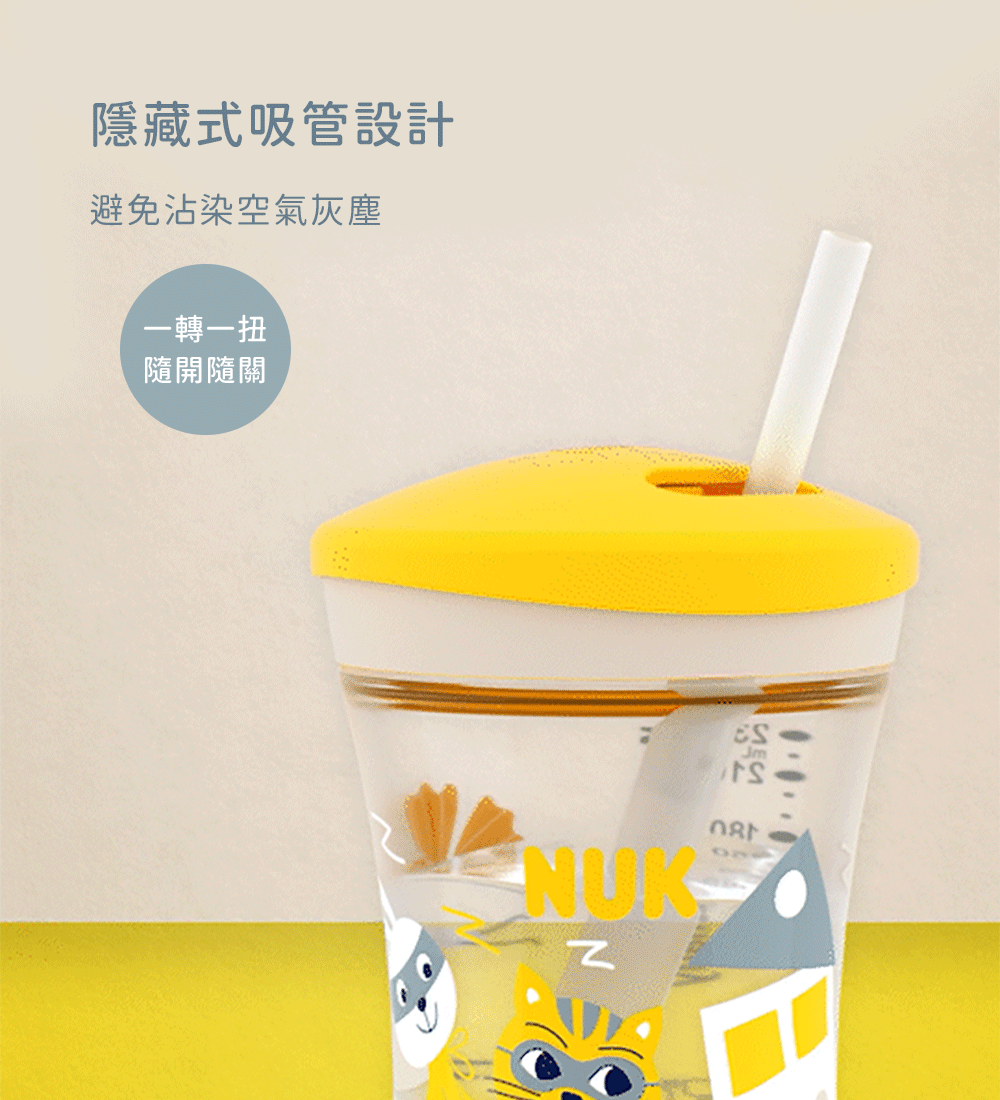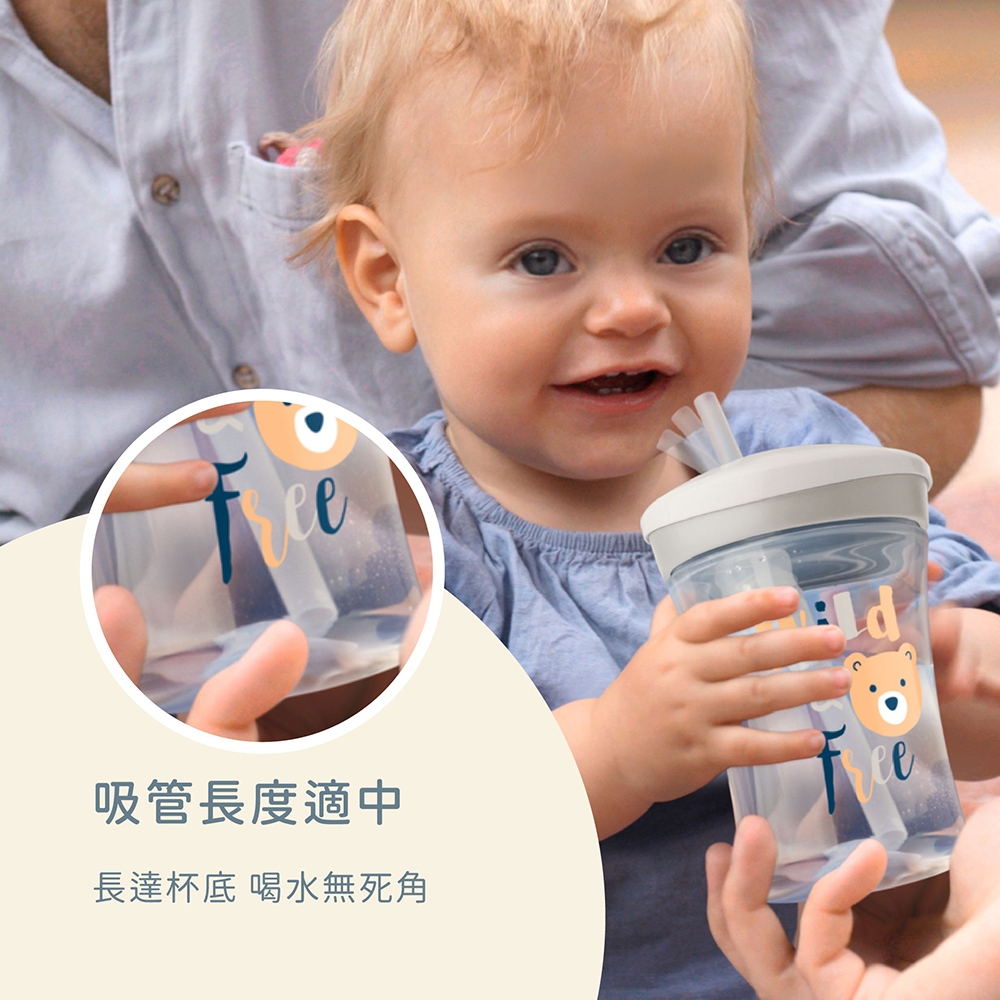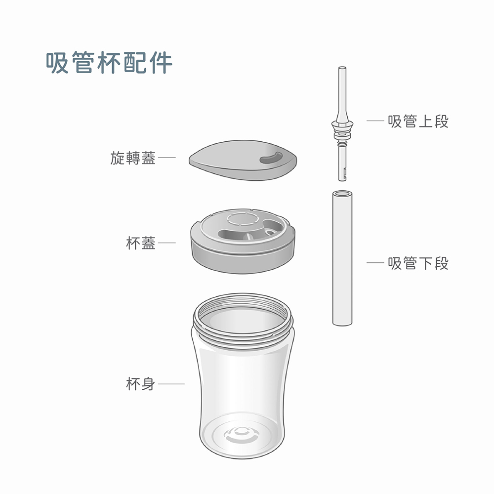 成長型360度防漏吸管杯,柔軟且柔韌的矽膠吸管,不傷害孩童的牙齦。只需輕輕旋轉上蓋,即可關閉出水口,一體式透氣口,可順暢飲用不阻塞