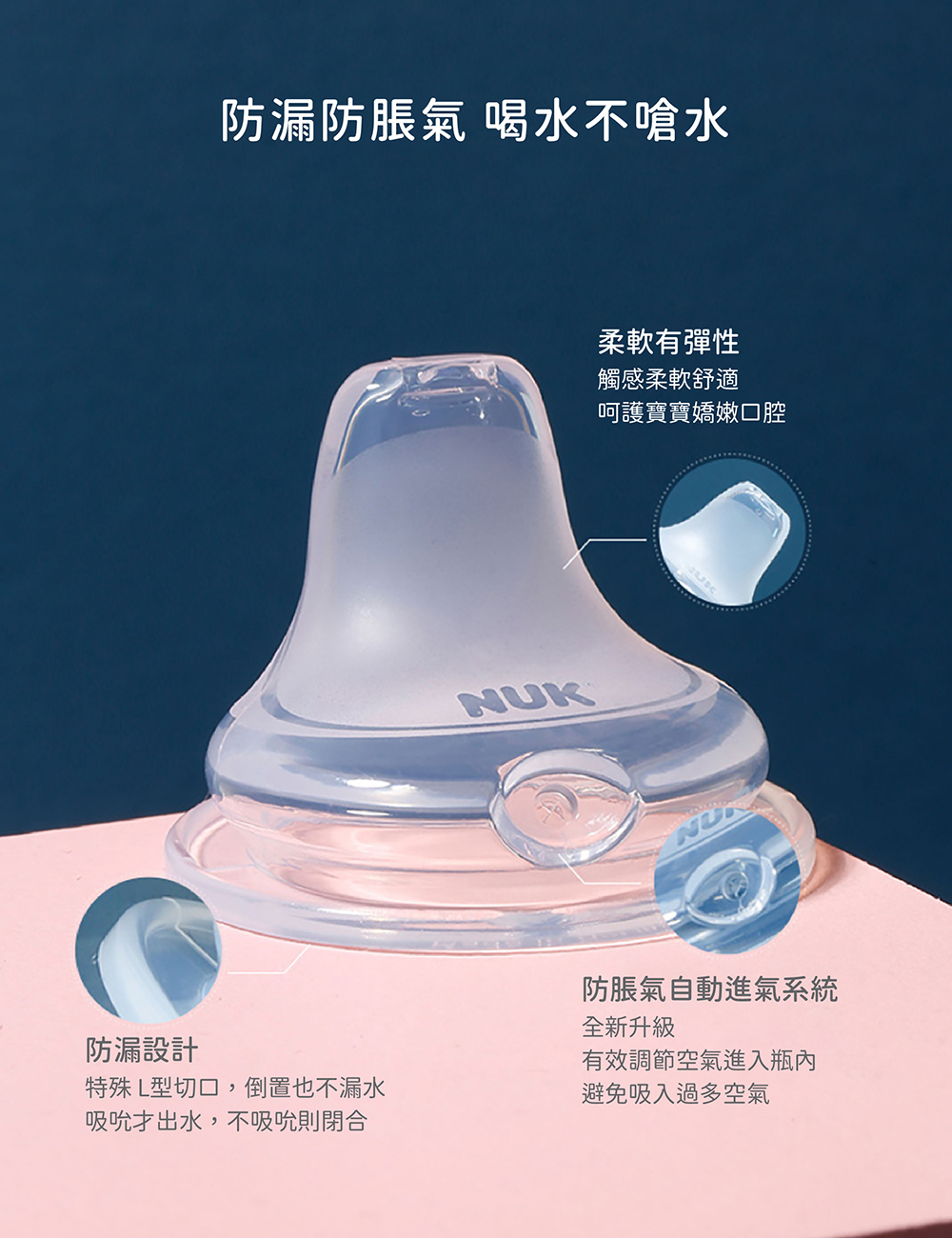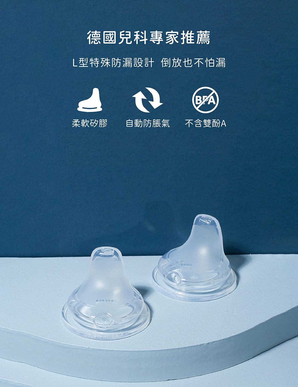 L型特殊防漏設計不漏軟嘴,訓練吸吮倒放也不怕漏。