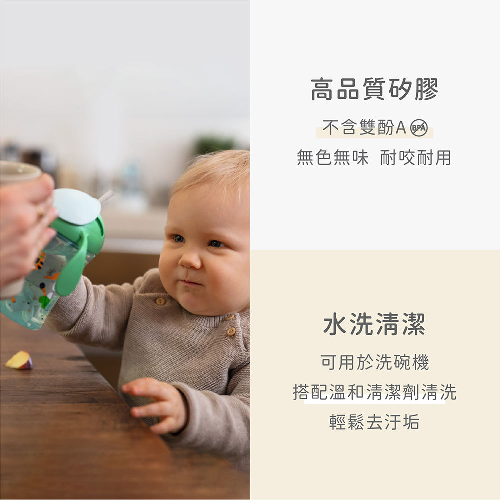 ‧ 柔軟矽膠吸管,不傷害孩童的牙齦